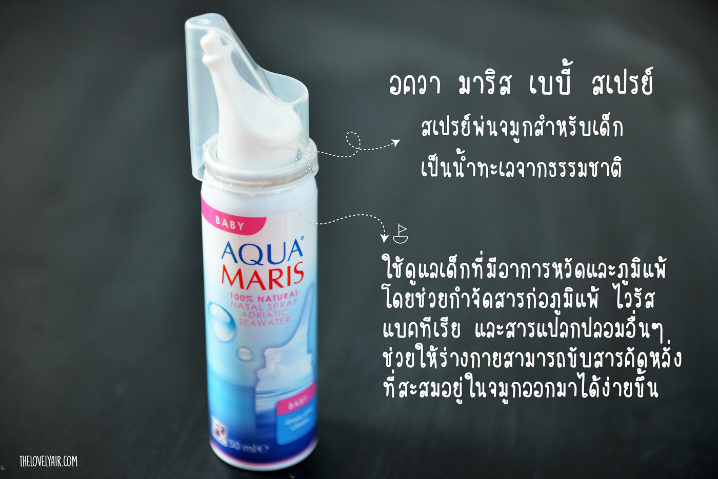 รีวิวโดย Motherhood BY LOVELYAIR เมื่อลูกป่วย หรือไม่สบายโดยเฉพาะเด็กเล็กๆ พูดได้เลยว่ามันคือปัญหาหนักหัวอกหัวใจของคนที่เป็นพ่อแม่ไม่ใช่น้อยเลยนะ จากประสบการณ์จะแชร์จะเล่าให้ฟังเลยว่าตอนลูกเป็นหวัดนี่เหนื่อยเอามากๆ ค่ะโดยเฉพาะมนุษย์แม่! ยิ่งบ้านไหนมีลูกเล็กๆ ด้วยนะ เหนื่อยคูณสองคูณสามเท่าไปเลยค่ะ เดี๋ยวลูกคัดจมูก เดี๋ยวลูกน้ำมูกไหล บางทีก็ครืดคราด ภูมิแพ้ขึ้น จาม และไออีกต่างหาก… เป็นที่ทราบกันอยู่แล้วว่าโรคไข้หวัดเป็นโรคที่เกิดได้ตลอดทั้งปี แต่ก็จะพบบ่อยในช่วงฤดูฝน ฤดูหนาว หรือในช่วงที่อากาศเปลี่ยนแปลง แต่หวัดเด็กๆ ก็อาจจะติดมาจากคนอื่นได้จากการถูกพาไปนอกบ้านเช่นกัน จากประสบกาณ์แม่แอร์จะบอกว่าอย่าเครียดหรือกังวลกับการเป็นหวัดบ่อยๆ ของลูกมากเกินไปค่ะ เข้าใจนะว่ามันทรมานใจ แต่เราคอยเอาเวลามาดูแลเอาใจใส่ลูกน้อยช่วงเป็นหวัดให้หายไวๆ กันดีกว่าค่ะ โดยปกติช่วงที่ลูกๆ ที่บ้านแม่แอร์เป็นหวัด ถ้าไม่มีไข้สูงมากหรือแค่เป็นหวัดธรรมดาก็จะดูแลลูกเองที่บ้านค่ะ ถ้ามีไข้ก็จะลดไข้ด้วยการเช็ดตัวด้วยน้ำอุ่น ให้ยาลดไข้เด็กและคอยวัดไข้ตลอดค่ะ แต่ถ้าลูกมีไข้สูงมากๆ แนะนำให้ไปพบแพทย์ไปโรงพยาบาลนะคะ และถ้าลูกๆ มีน้ำมูก แม่แอร์ก็จะระบายน้ำมูกออก ลดน้ำมูกให้ลูกๆ เพื่อให้โพรงจมูกโล่ง ช่วยให้ลูกๆ สามารถหายใจกันได้สะดวกขึ้นค่ะ แม่แอร์เชื่อว่าหลายๆ ครอบครัวคงจะมีปัญหากับการล้างจมูกเพื่อระบายน้ำมูกออกให้ลูกๆ กัน บางทีคุณแม่คิดอยากจะล้างจมูกให้ลูกแต่ก็ไม่กล้า กลัวลูกจะสำลัก มาค่ะ.. มาอ่านเรื่องราวความรู้เกี่ยวกับรีวิวนี้ดูรับรองหายกังวลใจ วันนี้แม่แอร์มีสเปรย์สำหรับพ่นจมูกสำหรับเด็กที่เป็นน้ำทะเลจากธรรมชาติมาแนะนำค่ะ ว่าแล้วเราก็อย่ามัวรอช้า ตามมาดูกันค่ะ Aqua Maris® Baby Nasal Spray